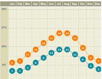 Paris väder är inte helt olikt det Svenska vädret men klart behagligare, ca 5 grader varmare. Paris har en genomsnitts temperatur på runt 12 grader Celcius, dvs betydligt varmare för en frusen nordbo. Kallast i Paris är det i februari medan juli har den genomsnittligt varmaste temperaturen.